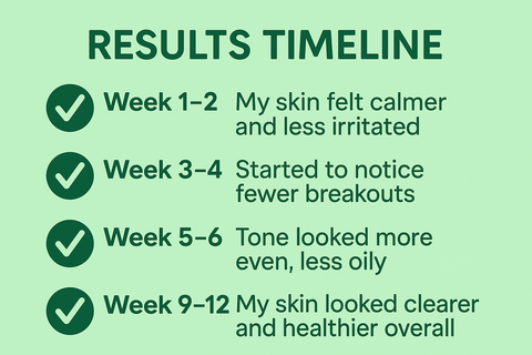 Some individuals may notice changes within 4–8 weeks, but results can vary. This is based on anecdotal feedback and is not guaranteed. Outcomes may be influenced by factors such as diet, stress, lifestyle, and consistency of use.
